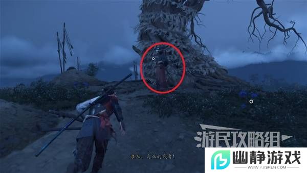 此处的NPC没在树下,在瀑布旁边的坑洞里。
