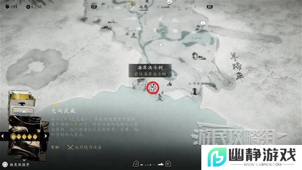 跟随指引移动到【羊蹄草原】下面的【海岸决斗树】。