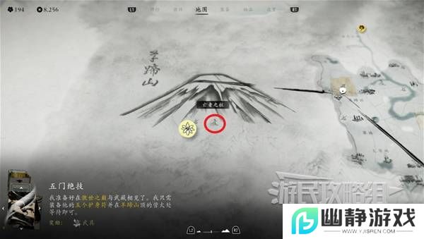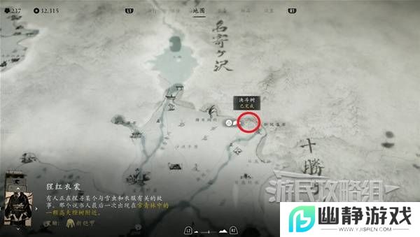 在【十胜连峰】区域左侧的突出部,到达目的地钻过一个墙缝再走一段路即可找到决斗树。
